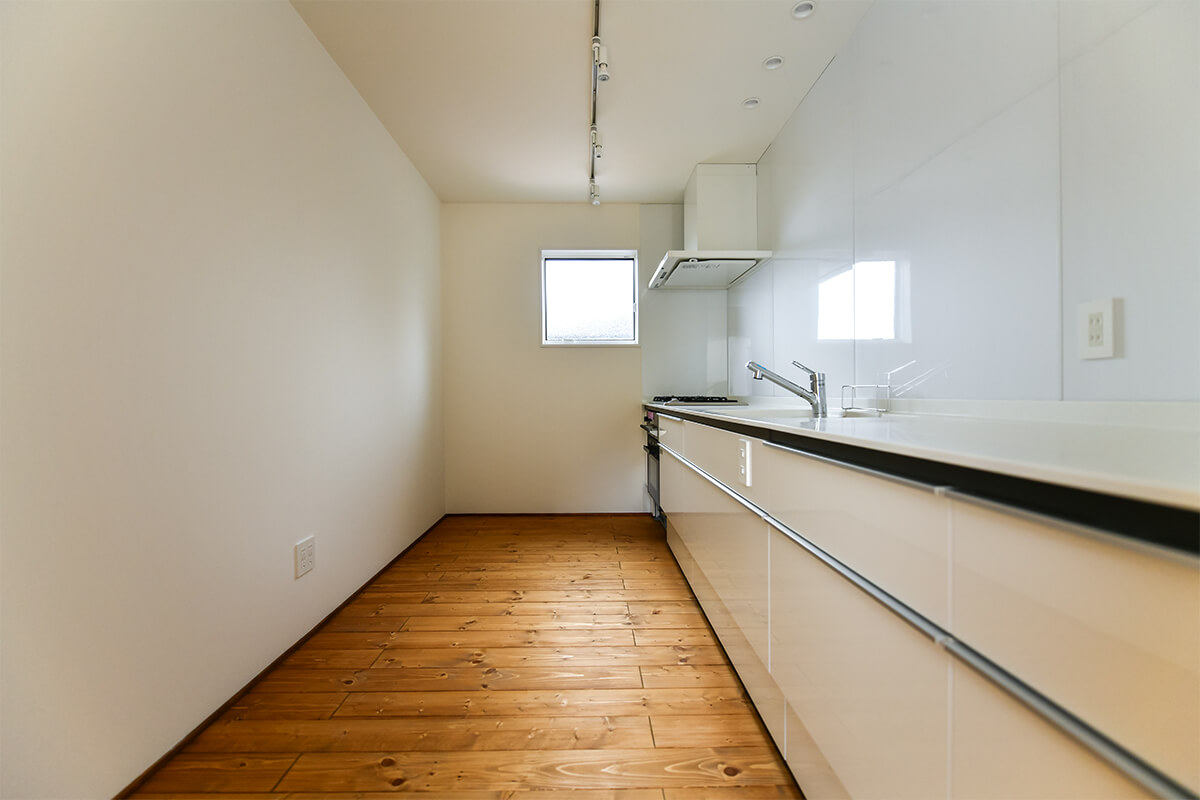 間取りは1階部分にリビングともう一つ個室を設け、キッチンはリビングからは見えない独立型のキッチンプランになります。