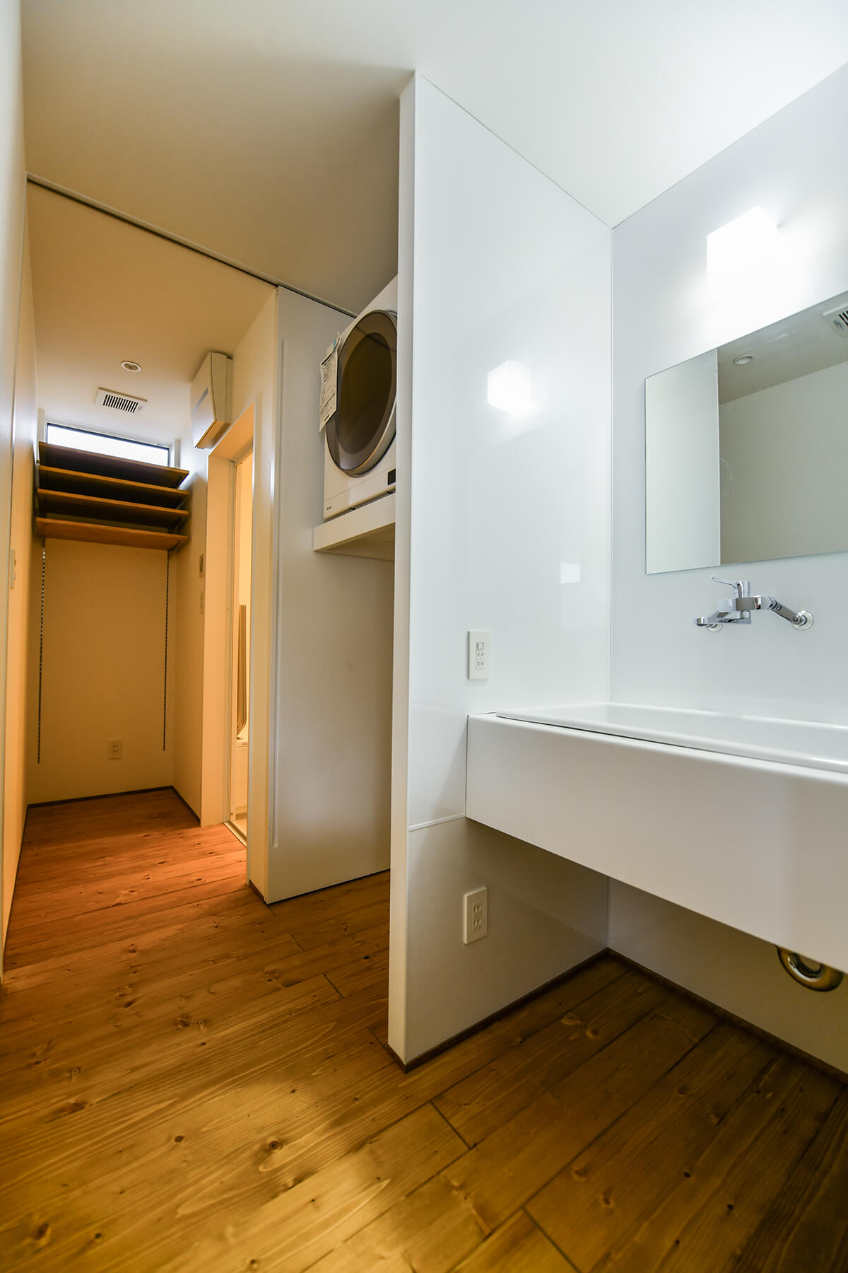更にキッチンの後方にはバスルームを配置し、ランドリーも兼ねるプランになっていますので機能性にも優れています。