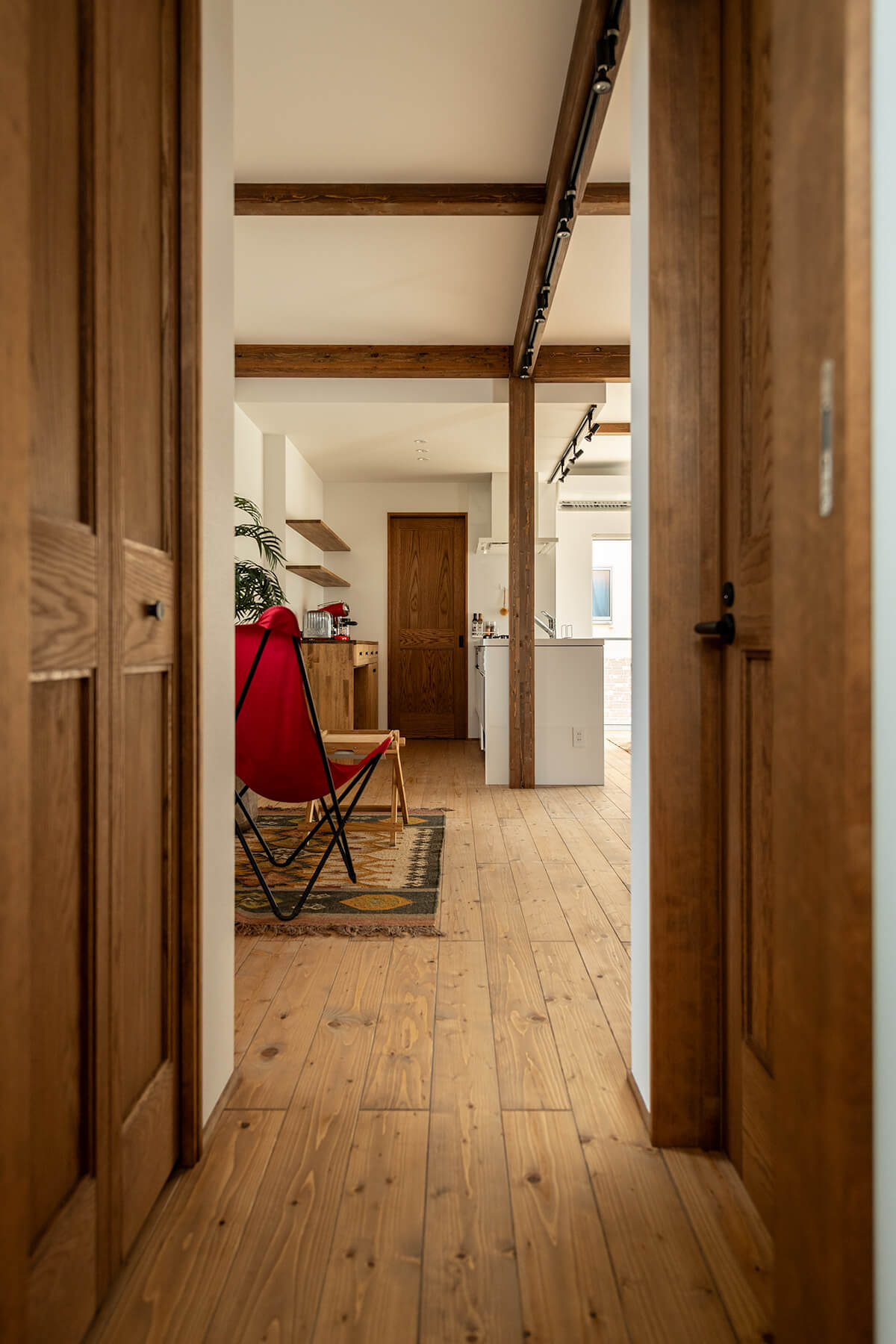 このドアを隔てることでリビングからバスルームなどの生活感を感じることなくゆったりと心地よく過ごすことができるのです。
