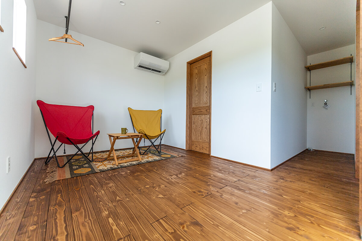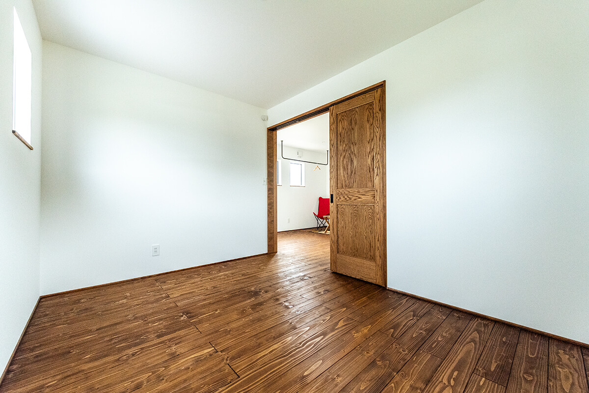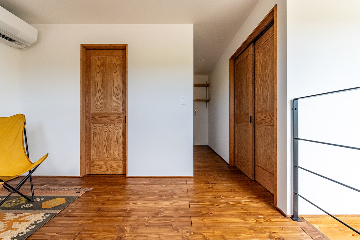 寝室は開口部を広めにとってありますので、普段は開け放っておけばホールとの連動でより広く感じる空間になります。