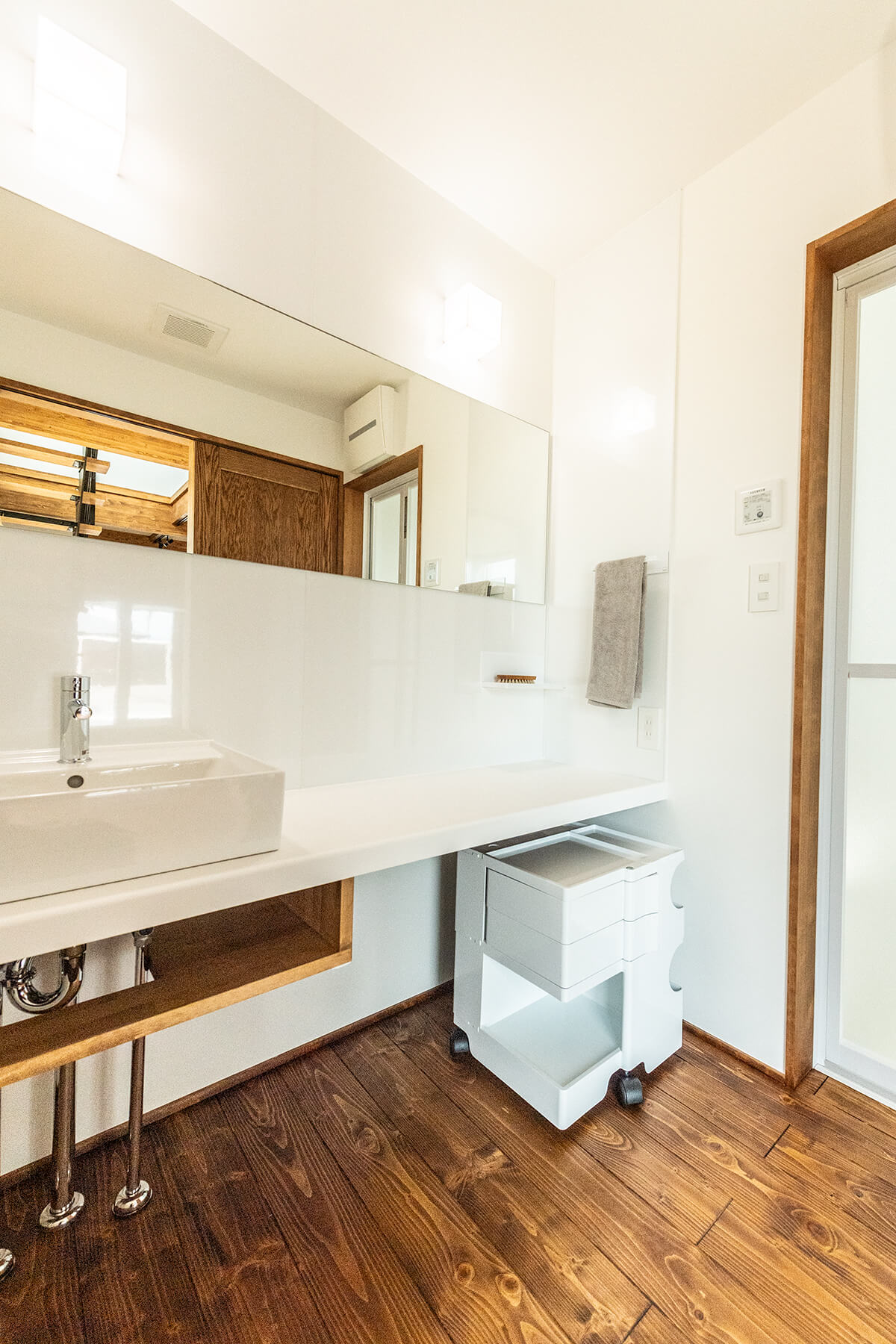 これにより1階バスルームの空間に余裕が生まれ、スッキリとした印象になりました。