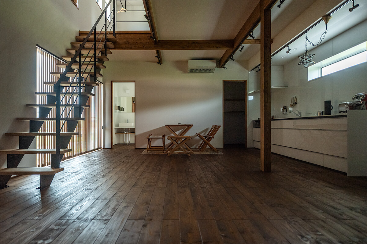 しかし、そのガレージから車を移動させればリビングの延長のように使える設計です。
