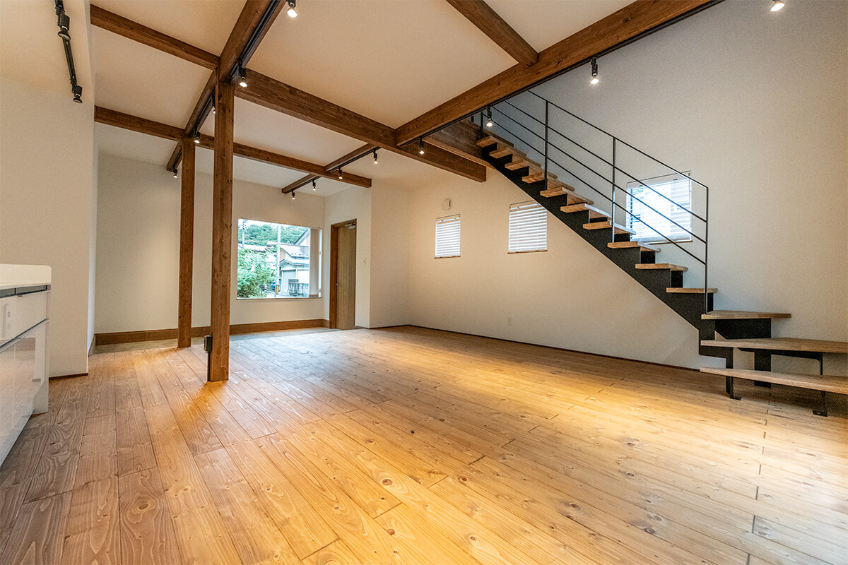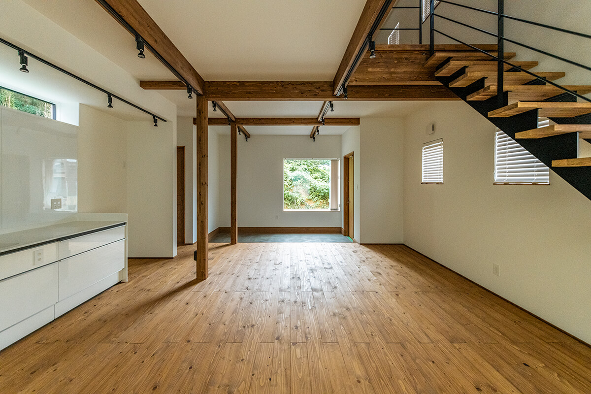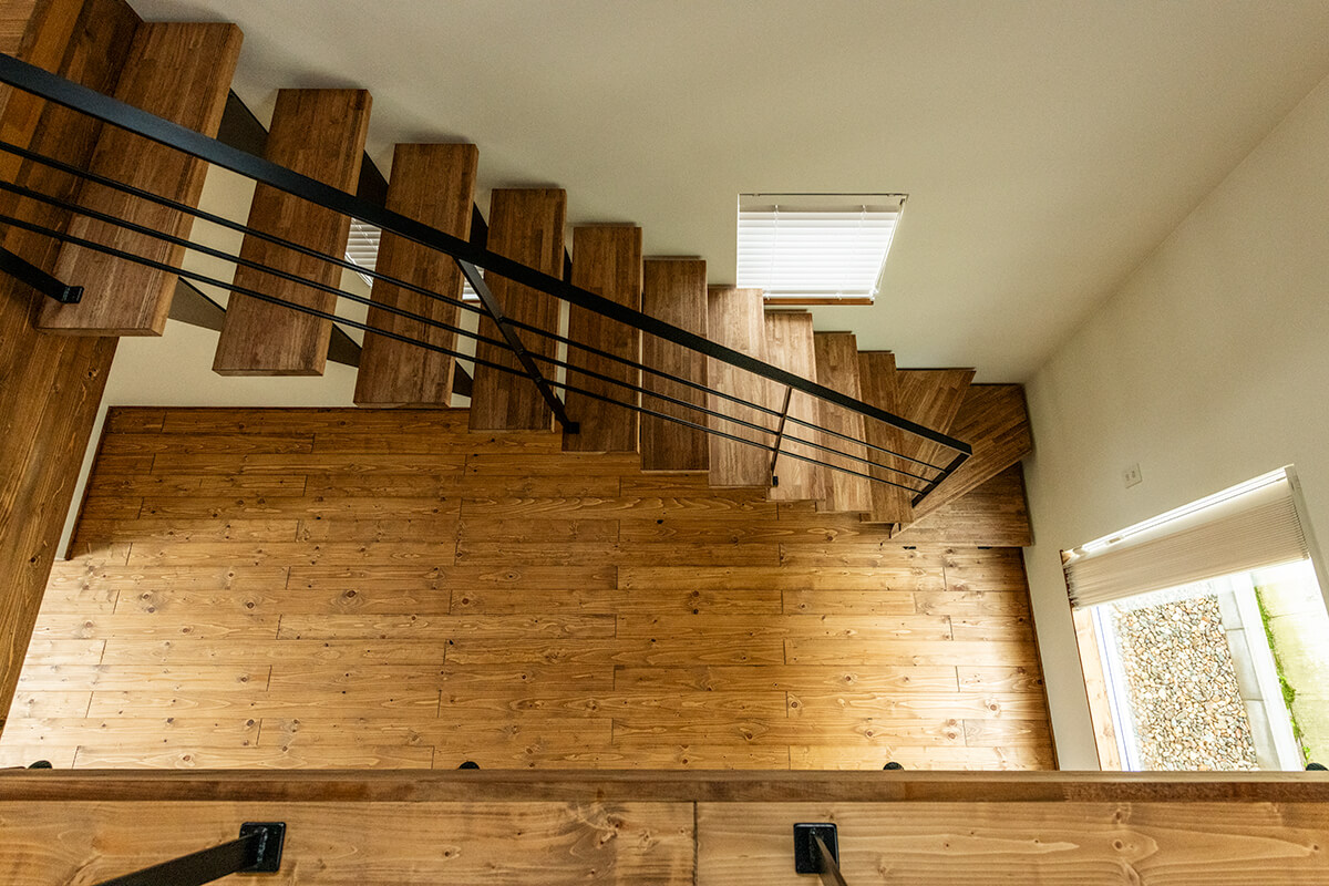 階段もいつものスケルトンにすることで視線を妨げず、抜け感を演出してくれています。